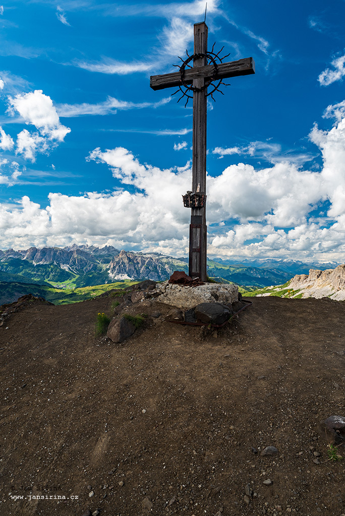 Kříž na vrcholu Col di Lana v Dolomitech (Cross on Col di Lana mountain peak in the Dolomites)