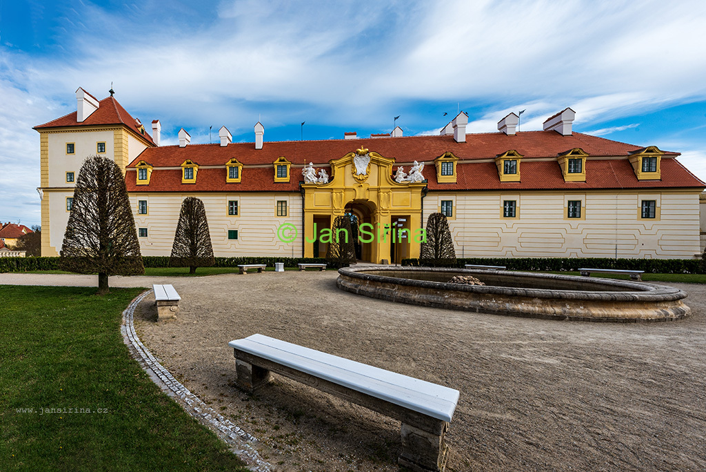 Nádherný zámek Valtice na jižní Moravě nedaleko hranic s Rakouskem během jarního odpoledne (Amazing Valtice chateau in South Moravia region near borders with Austria during springtime afternoon)