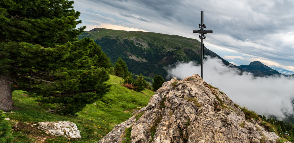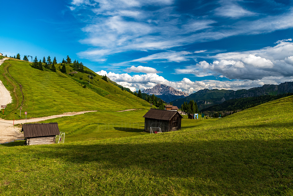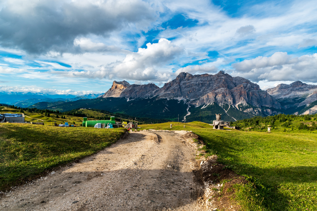 Z tohoto sedla mě čeká krátký strmější výstup až na vrchol Pralongia s kaplí na vrcholu – zde to žije převážně v zimě, v létě to zde působí ospalým dojmem, ovšem výhledy jsou odtud krásné po celý rok.