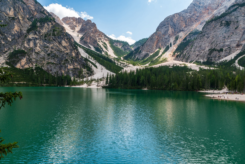 Závěrečný sestup ze sedla nad chatou Seekofel je hodně nezáživný a strmý, navíc čím níže klesám, tím je i větší vedro. Nakonec zhruba v poledne docházím k břehu samotného jezera, ještě si projdu fotogenicky zajímavější část okruhu kolem něj a na parkovišti se zastávkou autobusu kousek od jeho břehu končím mé dolomitské dobrodružství.